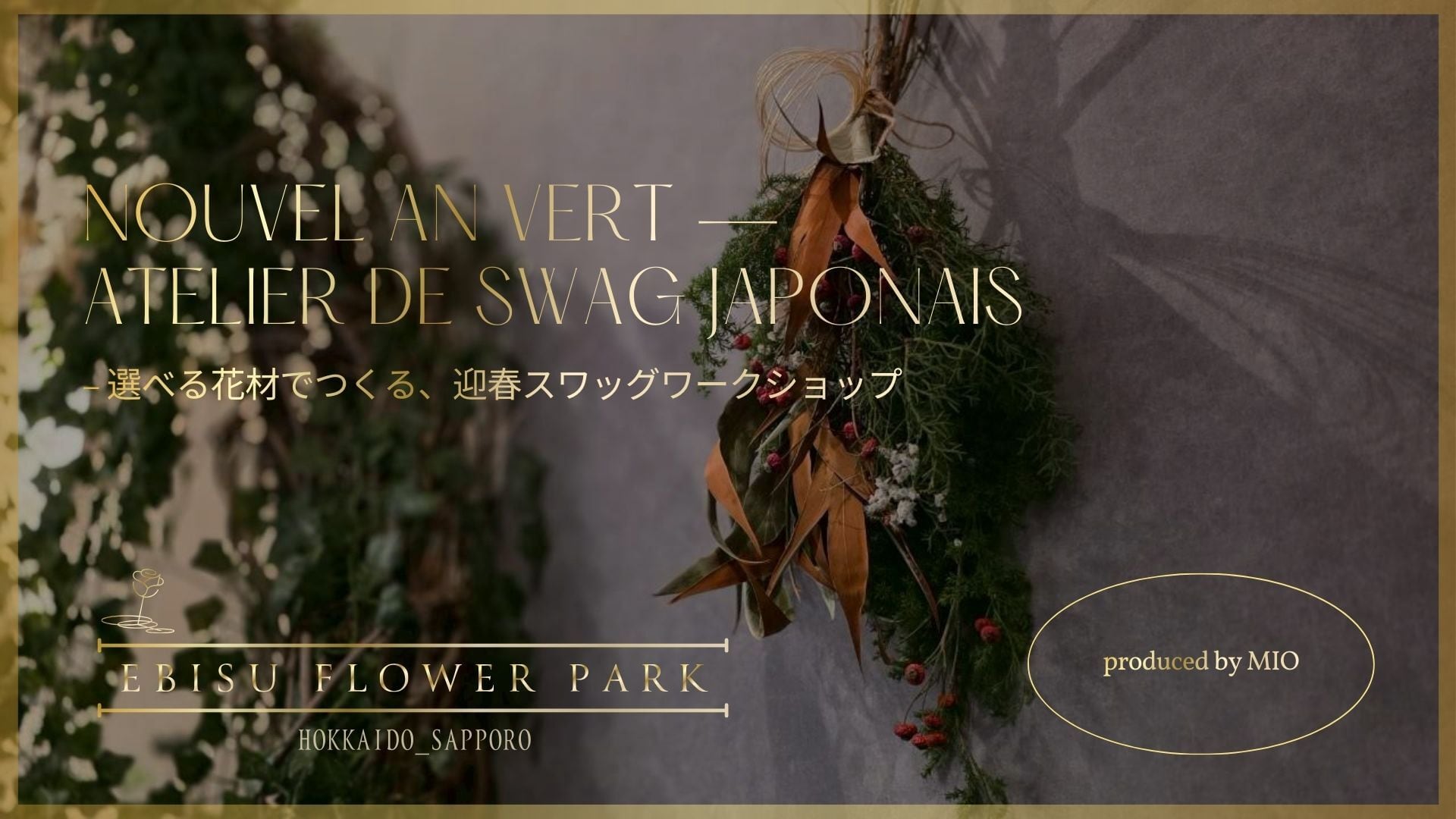 2025年12月26日(金)20:00〜22:00|札幌店限定イベント「Nouvel An Vert — Atelier de Swag Japonais - 選べる花材でつくる、迎春スワッグワークショップ -」 | EBISU FLOWER PARK